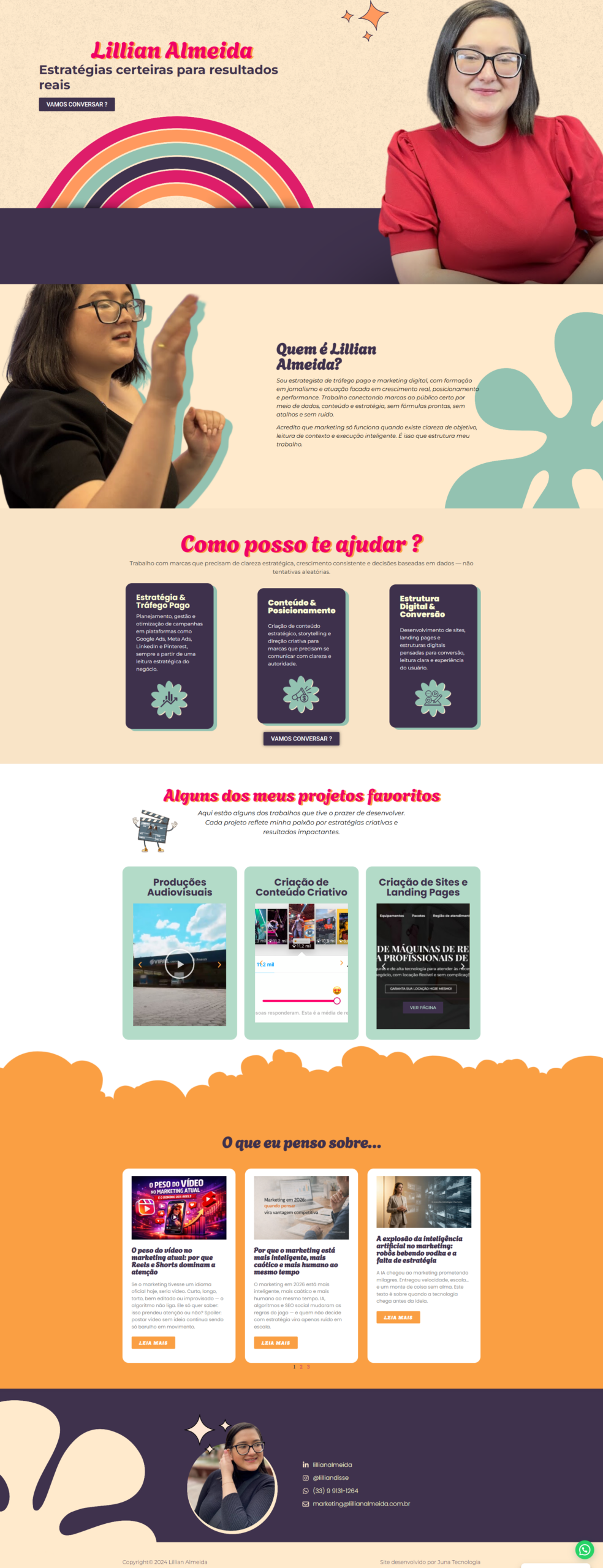 A Lillian buscava um site que representasse sua essência: alegre, comunicativa e profissional.